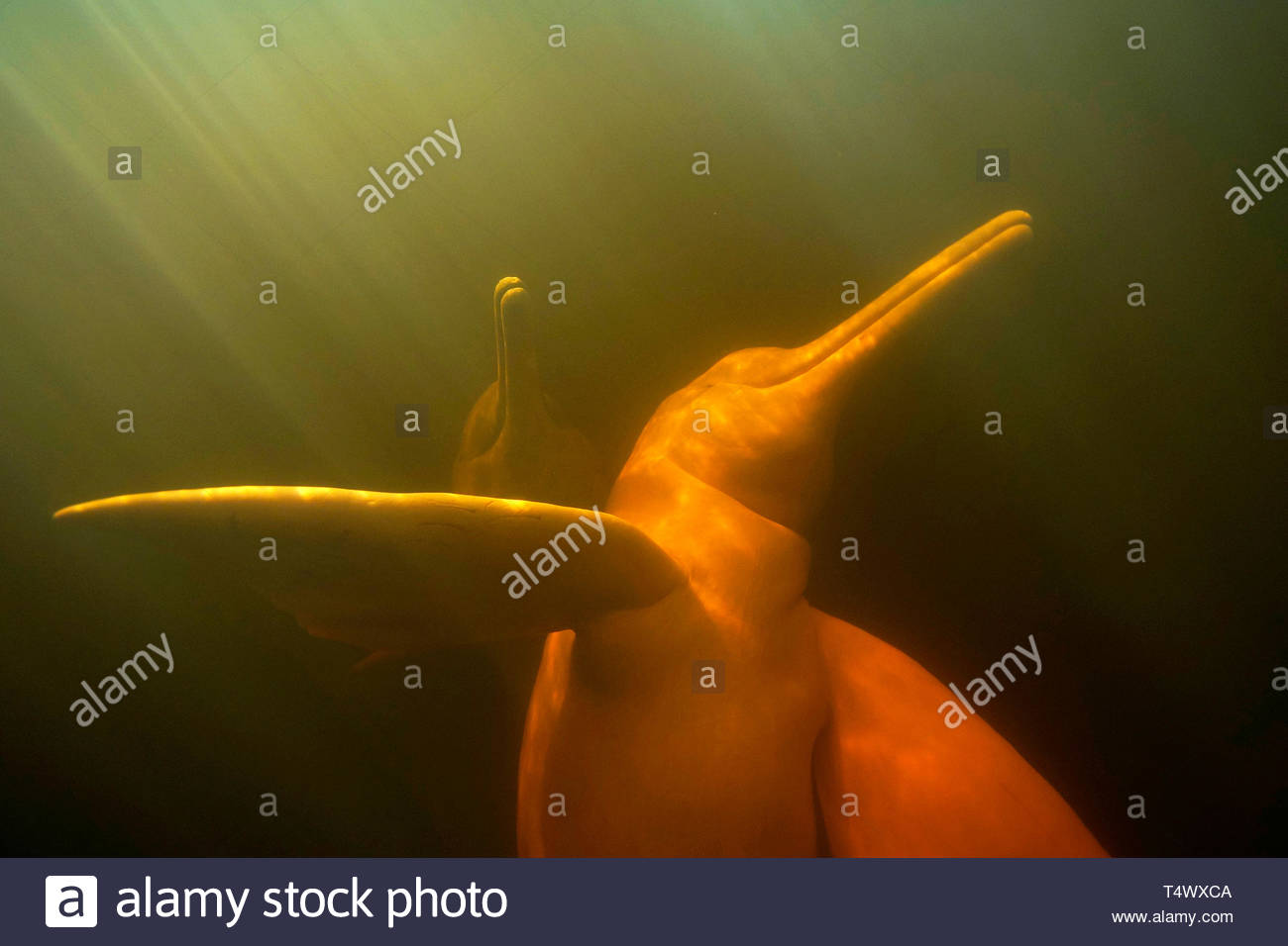 Description: Pink River dolphin Amazon river dolphin or Boto Inia geoffrensis