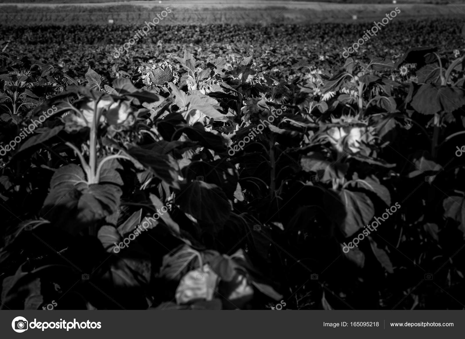 Description: Sunflower field in summer black and white Italy Umbria Stock